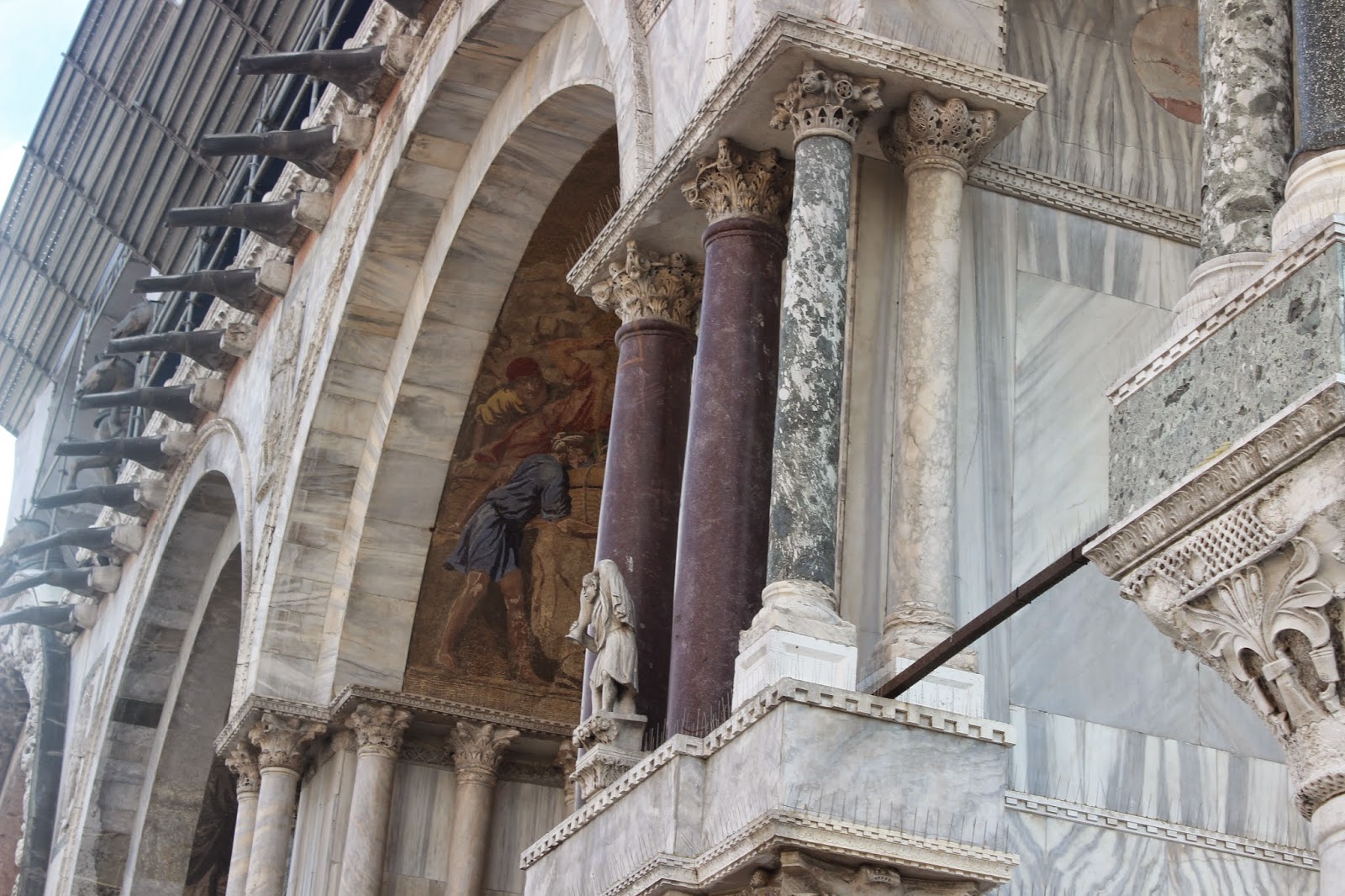 The next day we were to meet up with our tour group in St. Marks Square for more exploring. Having lost our way so many times the day before I figured Water Taxi or Water bus. However, an hour shower on my son's part, my inability to figure out the Water Bus so that we decided to hire another water taxi meant that we arrived just in time. However, that was when we realized that it didn't say where we were supposed to meet. So we finally had to ask some police officers and they pointed out where we needed to be. We were 5 minutes late and our tour had started with us. By this time I'd had enough of tours and we decided to do our own thing. We started by touring the Basilica of St. Marks which wasn't part of the tour.